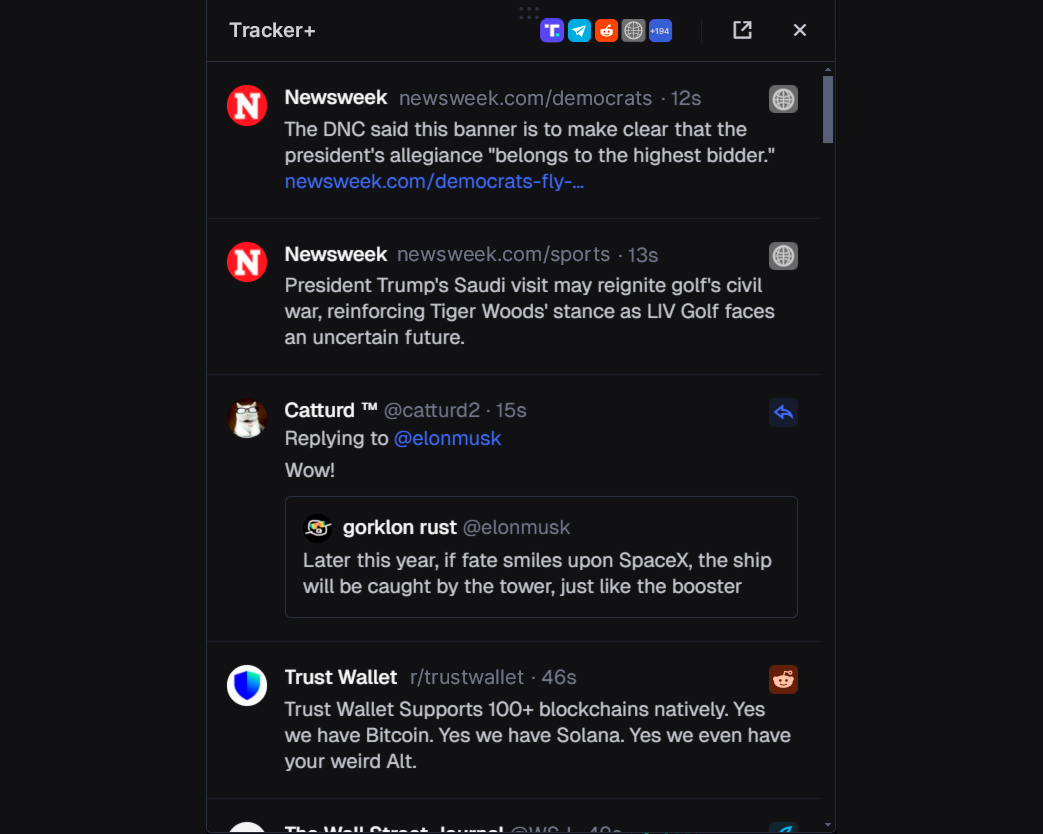 The improved tracker collects trends from Twitter, Truth, Reddit, Telegram and also analyzes 200+ crypto sites (CryptoSlate, Cointelegraph, etc.) with AI for high-profile news. Be the first to know
