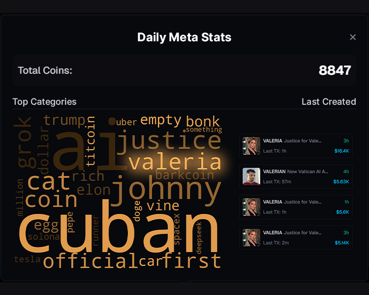 Use the interactive Wordcloud to identify the hottest and most discussed topics in the memecoin industry